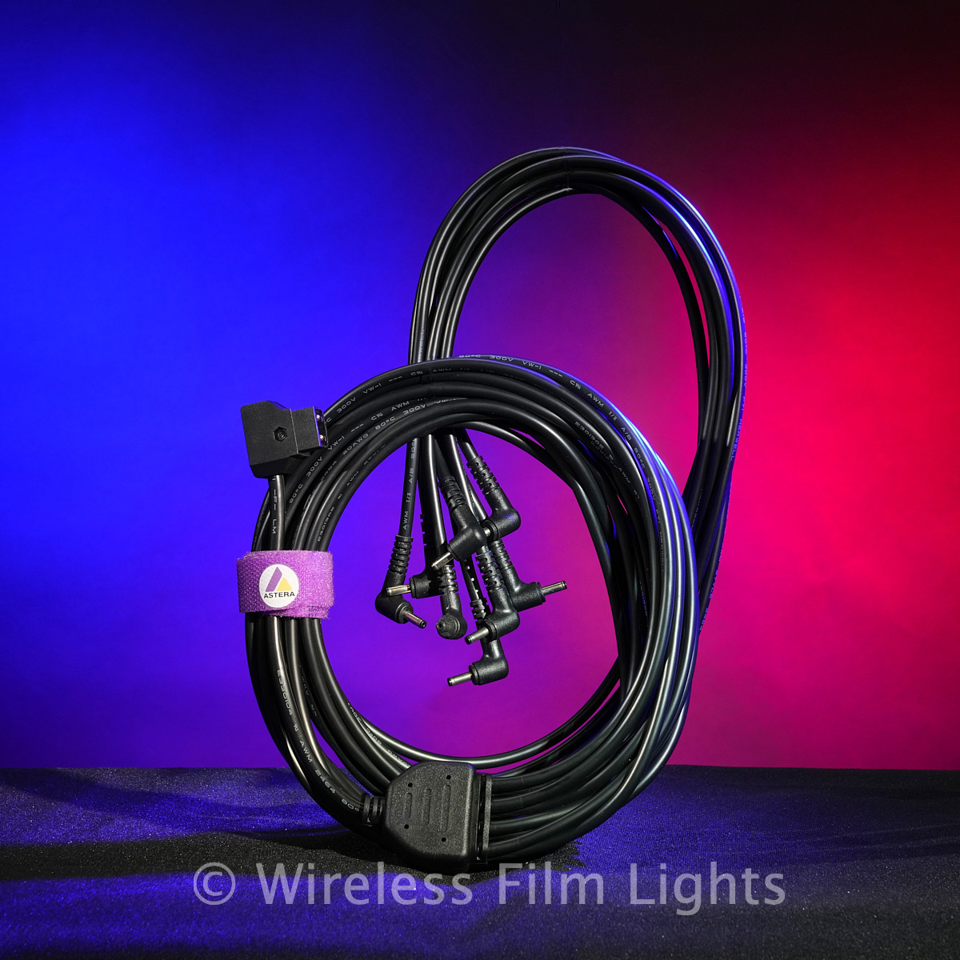 The Astera D-Tap SplitCable (FP5-DTSC) is a practical solution for powering multiple NYX Bulbs from a single 14.4V V-mount battery. Designed for efficiency and convenience, this cable allows for streamlined setups in various production environments.
