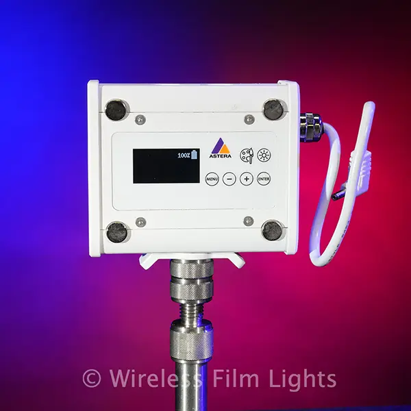 The Astera PowerStation is a versatile accessory designed to enhance the functionality of the Astera NYX Bulb. Serving both as a battery pack and a control interface, it allows for flexible power options and precise programming of your lighting setup.