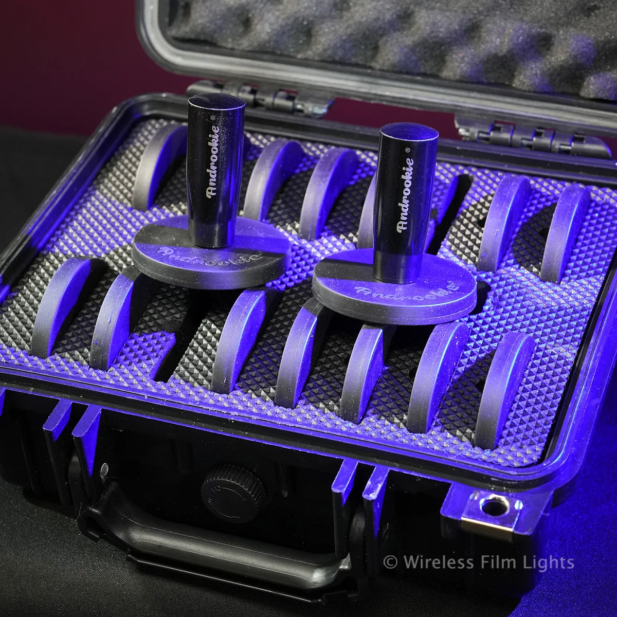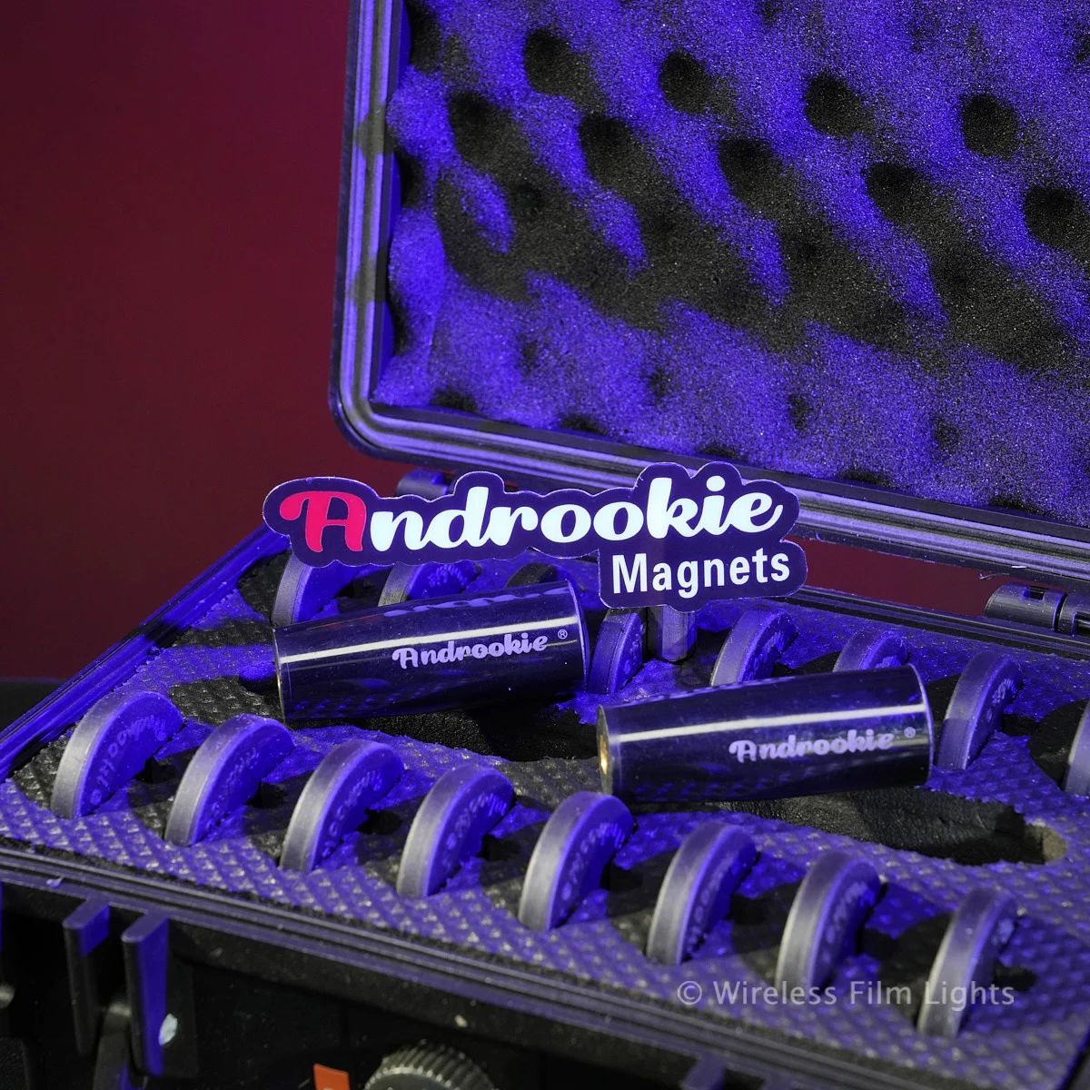 The Androokie Small Magnet Kit is a compact magnetic mounting set built around sixteen 43mm rubber-coated 1/4-inch stud magnets. Designed primarily for use with Astera Tube Holders, this kit provides a lightweight, low-footprint solution for mounting tubes to ferrous surfaces.
