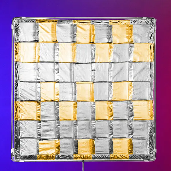 This unique lightweight fabric 4′ x 4′ silver and gold reflector by HoneyCrates will quickly and easily slip on to any standard 4′ x 4′ grip frame or any 4′ x 4′ flat gel frame.